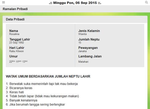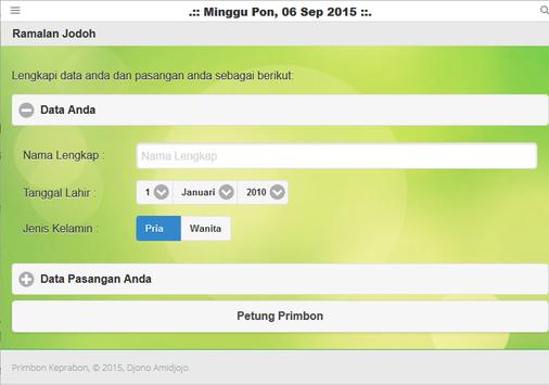 Fitur Primbon ini meliputi :