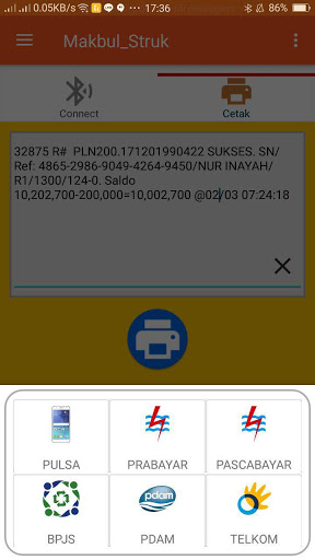 saat ini menu cetak struk yang tersedia PULSA, PRABAYAR, PASCABAYAR, BPJS, TELKOM, dan PDAM
