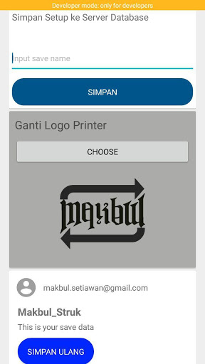 Nama setup dan nama email anda, untuk otentikasi pengambilan setup dari database