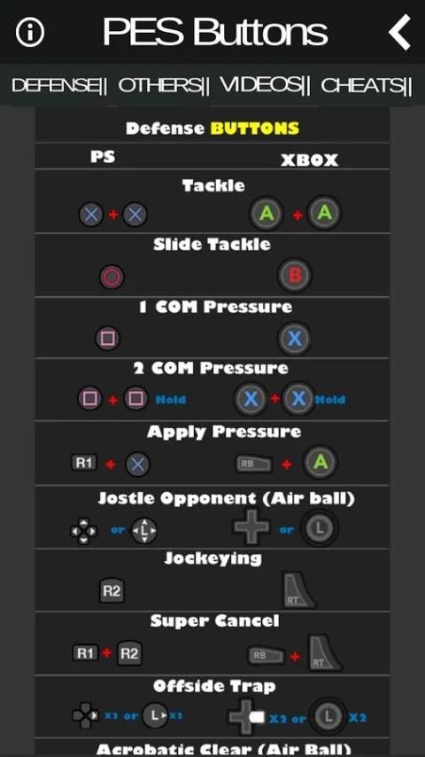 PES 2016 -The Buttons adalah permainan panduan ringkas untuk PES / Winning Eleven 2016. Ini memberikan akses mudah dan cepat untuk Anda perintah muka PES, menipu, tips, strategi dan file pilihan. Ini adalah pendamping kecil Anda kapanpun dan dimanapun Anda membutuhkannya karena mampu bekerja tanpa koneksi internet. Anda dapat menggunakan aplikasi ini selama bermain game untuk berlatih bergerak keterampilan baru, ofensif dan taktik defensif.