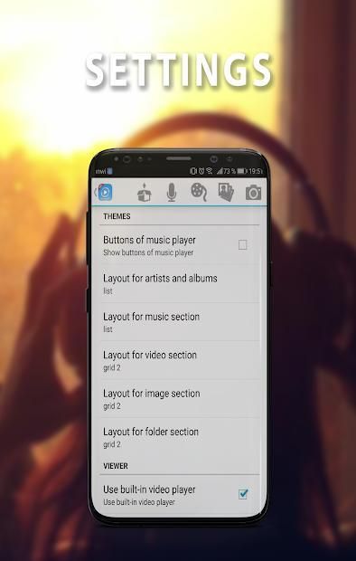 - Beberapa opsi pemutaran: putar otomatis, format gambar, kunci layar, dll.