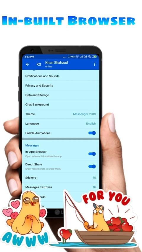 FUN: Pro Messenger 2019 memiliki alat pengeditan foto dan video yang kuat dan platform stiker / GIF yang terbuka untuk memenuhi semua kebutuhan ekspresif Anda.