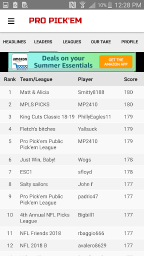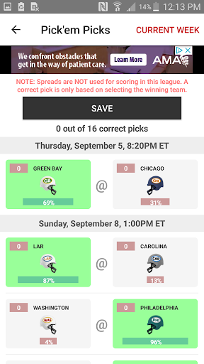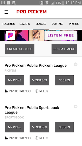 Pro Pick'em adalah game Mingguan PRO Mingguan Gratis yang memungkinkan Anda bersaing dengan teman, kolega, atau penggemar sepakbola pro lainnya di seluruh dunia dengan memilih pemenang dari pertandingan sepakbola PRO musim reguler tahun ini.