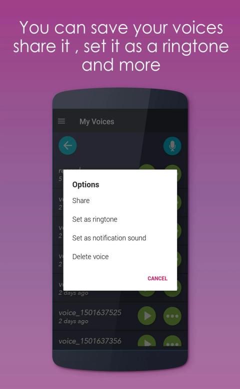 just record your voice , apply the effect and then use it as a ringtone , and more...