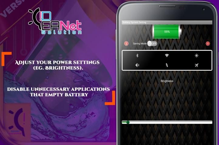 ✔ mode ekonomi Baterai - menyesuaikan parameter konsumsi (WiFi, luminositén, 3G / 4G, GPS, Flight mode)