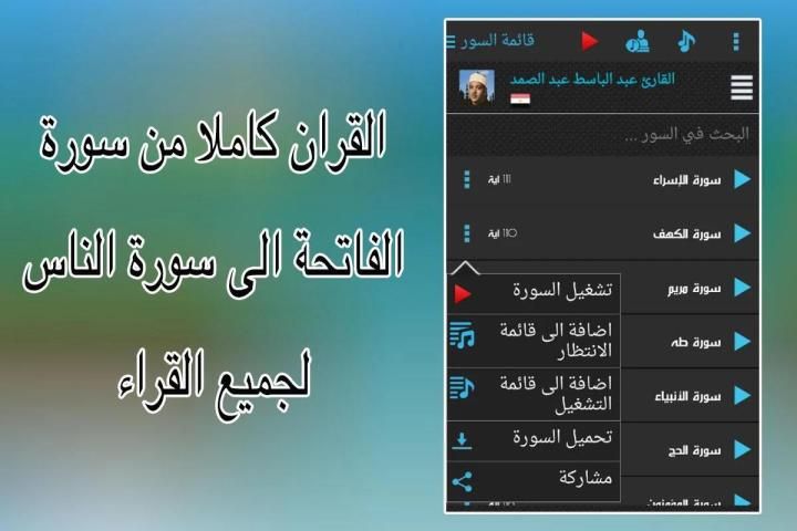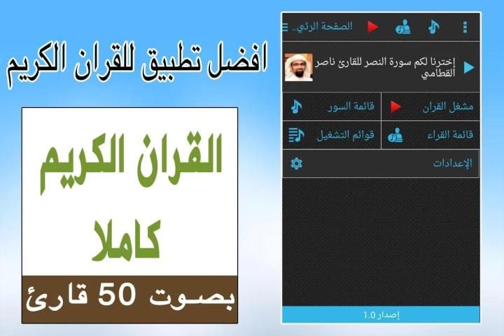 aplikasi pembaca pada 50 pembaca terbaik dari dunia Islam, berisi setiap pembaca ada semua Tlawath dari Surah Al-Fatihah untuk orang