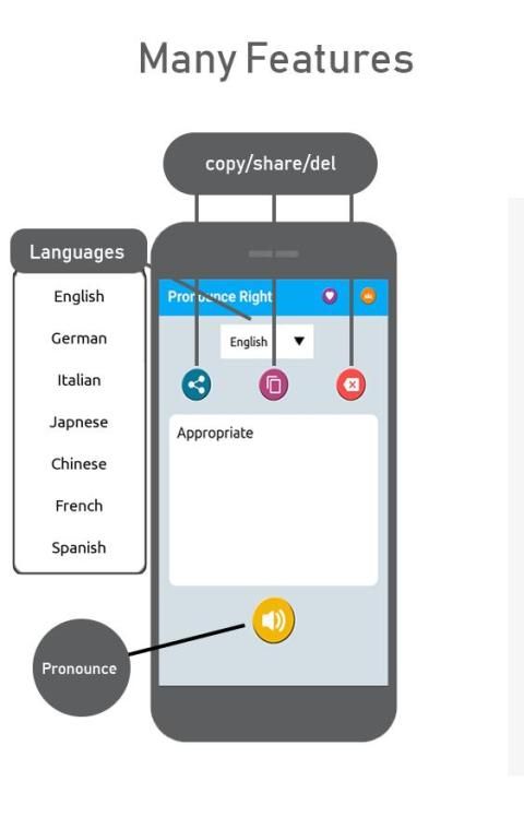 the word you typed. It provides easy type and speak option in different sort of languages with other functionalities. Just type your text or copy text from anywhere, and paste it in the text box, after that tap on speaker button to listen what you have typed or pasted. Text to speech includes a lot of beautiful features like text input, copy text, clear the text box, sharing results and many other which you like to have in pronounce it right app for word pronunciation.
