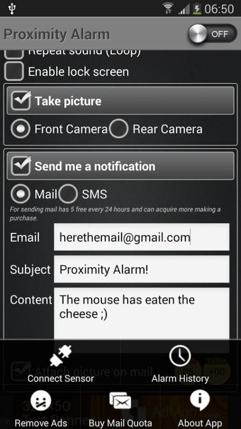 Aplikasi sederhana dan kuat untuk mengatur alarm yang menggunakan sensor kedekatan.