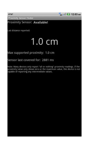 Need to find your proximity sensor?Proximity Sensor Finder can helpProximity Sensor Finder does what it says it helps you locate the proximity sensor on your android device.It is a very simple, purposebuilt app with no flashy graphics Proximity Sensor Finder tells you a few things about your device:1. Does the device have a proximity sensor?2. Is an object in close proximity detected?3. Does this device support actual proximity distances or just quot;coveredquot; and quot;uncoveredquot; sensor states?4. For supported devices, exactly how far away is the object?5. How long has the sensor been covered?6. How much power is the proximity sensor consuming?We developed Proximity Sensor Finder as an internal testing tool but it soon became apparent that there was a need in the market for just such an app, so we decided to ship it and make it freeInternet and location permissions requested are just for ads, no other data is transmitted or received.