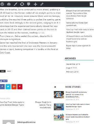 Public Mirror, sebuah usaha dari Indocom Media Private Limited adalah Portal Berita dan Informasi terkemuka Jammu dan Kashmir dan tujuan online untuk berita untuk Lakh orang-orang ketika datang ke berita lokal dan masalah dari Chenab Valley. Ini adalah perpaduan yang mulus dari Video , Audio dan teks untuk Berita Lokal dan informasi untuk pengalaman terbaik dan termudah.