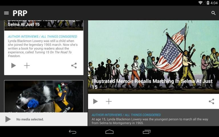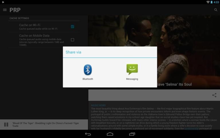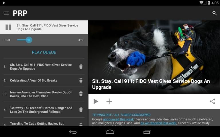 Public Radio Player memiliki integrasi Chromecast, sehingga Anda dapat melakukan streaming cerita Anda ke TV.