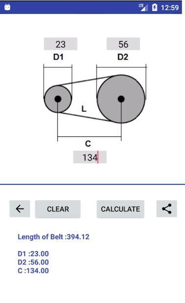 Kalkulator ini telah dikembangkan untuk memfasilitasi perhitungan ukuran belt sistem pulley.