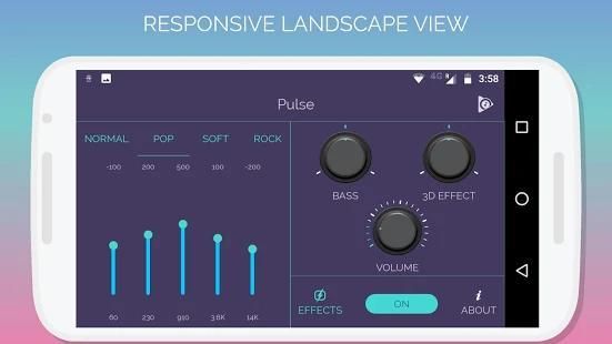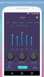 Pulse adalah penambah audio dengan multi-fungsi seperti lima Band Equalizer, Bass Booster, Virtualizer, Loudness Enhancer, Gema. Pulse Equalizer mengontrol frekuensi audio audio. Menggunakan Equalizer, frekuensi Audio dapat memotong atau meningkatkan. Pulse Virtualizer meningkatkan resonansi suara. Pulse Loudness Enhancer akan meningkatkan volume sistem. Gema membantu untuk mengubah lingkungan abstrak. Tidak perlu klik sekali lagi untuk menyelamatkan yang telah ditetapkan. Cukup pilih salah satu dari pengguna yang telah ditetapkan kemudian mulai menyamakan frekuensi audio. Juga, Anda dapat membuka pemutar musik bawaan ponsel Anda dari denyut nadi, termasuk untuk membuat pengalaman pengguna yang lebih baik. Setelah Instalasi aplikasi ini, Anda dapat merasakan "nyata PULSA".