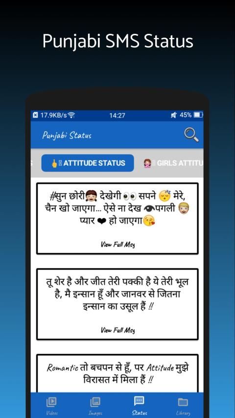 A huge variety of small videos are provided in Punjabi Video Status for Whatsapp 2019 app. Whatsapp video, video status, Lyrical video and story videos in minimum realistic size and best quality are available in Punjabi Video Status for Whatsapp 2019 app. It is very easy o share photos/videos using whatsapp via whatsapp status. Sharing photos is simple but making a video of your feelings or the tune you're humming is difficult as hell.