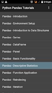 9Apps provide best free android apps download. 30,000+ users downloaded Python Pandas Tutorials latest version on 9Apps for free every week! This app is intended for an adult audience. This hot app was released on 2018-04-19. Be sure that you check your current app before you start a run.