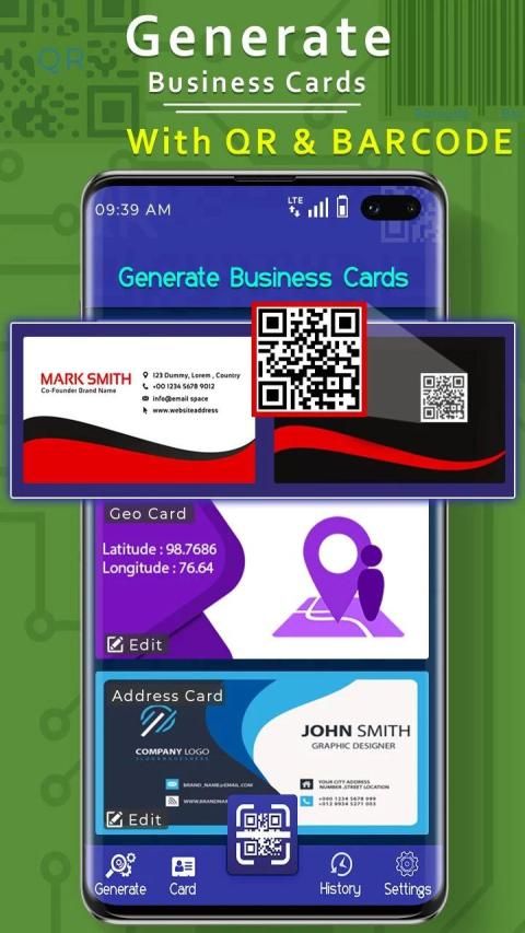 • Generate Business Cards in QR codes