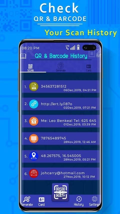 History of previously performances shall be maintained by this QR code scanner & code generator/bar code scanner app. You may search for a past performance by this QR code scanner & code generator app.