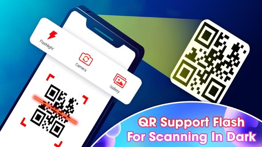 - QR code reader and Barcode scanner with flashlight for darkness environment.