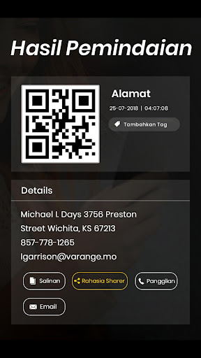 ☆ Melakukan berbagai tindakan (Email, Panggilan, Salin, SMS ...) langsung dari halaman Pindai Detail