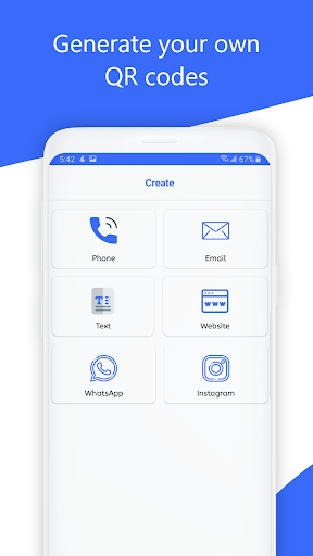 Generator kode QR dapat menyandikan banyak jenis termasuk clipboard, teks, URL, Wi-Fi, nomor telepon, SMS, kontak, email, email, Instagram, Facebook, WhatsApp, Twitter, YouTube, Spotify, PayPal, dan Viber. Anda dapat menyimpan, membagikan kode QR yang Anda buat.
