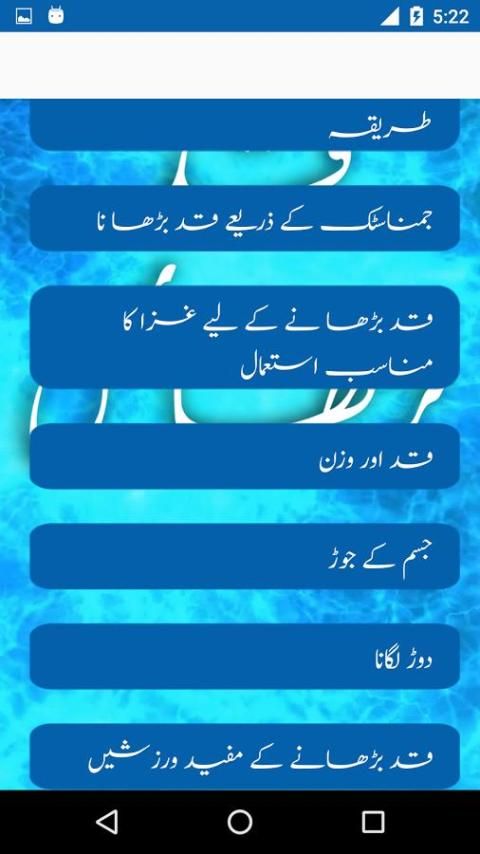 Ab Apna QAD Barhaaiyn sirf chand dino manusia. Semua tips dan trik dalam bahasa Urdu. Seperti namanya aplikasi ini menunjukkan qad Lamba Karne ka Tarekat. Qad ka bharhany k asan se asan tariqy jis se koi bhi Faida Utha sakta hei. tips terbaik untuk meningkatkan aplikasi ketinggian membawa Anda cara terbaik di mana Anda dapat meningkatkan tinggi badan Anda dan tumbuh lebih tinggi. Ada jutaan orang di dunia ini yang tidak tumbuh lebih tinggi dan karena ketinggian rendah mereka mereka kehilangan peluang penting. Hmaray mashray m chotay qadk logo ko nama buray se Pukara jata h jasay Bonay, Choto, Githa dll Yeh aplikasi ap ko di Masail se nikalnay m boht mada hari gi. Yeh aplikasi ap ko permainan fisik kuch btay gi atau btay gi k ap ko khoorak (makanan) kon si menggunakan krni hogi. Saya s k Ilawa desi totkay btay gay h k wo Kasay Tyar hotay h atau penggunaan Kasay krna chaye.Ap k Jism latihan ki, latknay ki warzish, Uchalnay Kodnay ki melakukan latihan dll