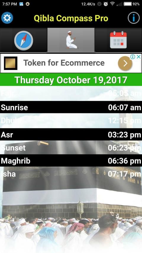 Qibla Compass is a 3 in 1 app with Islamic Compass, Islamic prayers time and Hijri Calendar and date converter with holy Mecca Background. You can use this app at any place in the world to find qibla direction accurately.