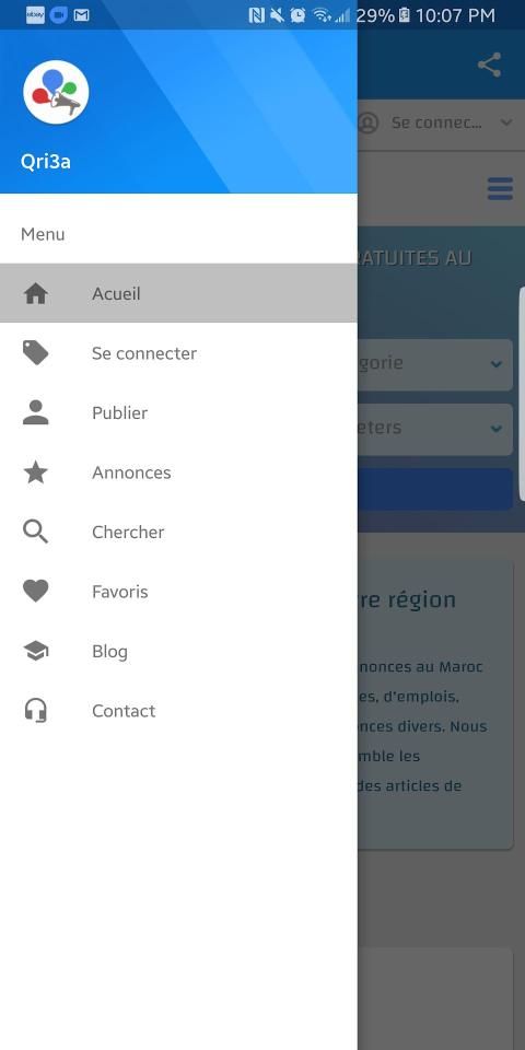 Qri3a.ma adalah situs iklan baris gratis di semua Maroko. Tujuan kami adalah untuk menciptakan sebuah platform di mana semua pengguna dapat Trever dan beriklan gratis. kita daftar berbagai jenis produk dan kami pastikan mereka up to date, kita daftar mobil, pekerjaan, real estate dan jasa. aplikasi bekerja karena kebanyakan aplikasi di Maroko sebagai avito.ma marocannonces.com dan mabroka.ma