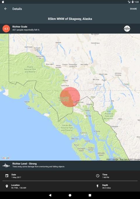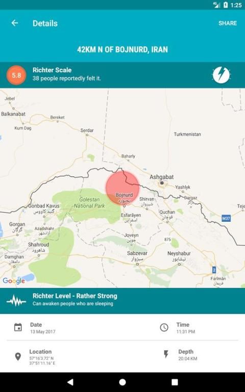 - Dapatkan informasi yang tepat tentang gempa bersama dengan lokasi, kedalaman, tanggal dan waktu.