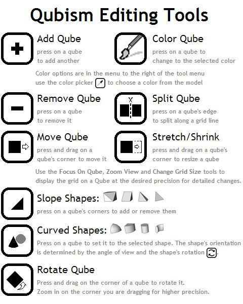 Qubism memungkinkan Anda merancang dan membangun model 3D sederhana menggunakan perangkat layar sentuh Anda. Hal ini dengan konstruksi blok digital yang disebut 'Qubes' yang dapat ditambahkan, dihapus, pindah, menggeliat, miring, berbentuk, diputar dan diwarnai dengan beberapa sentuhan.