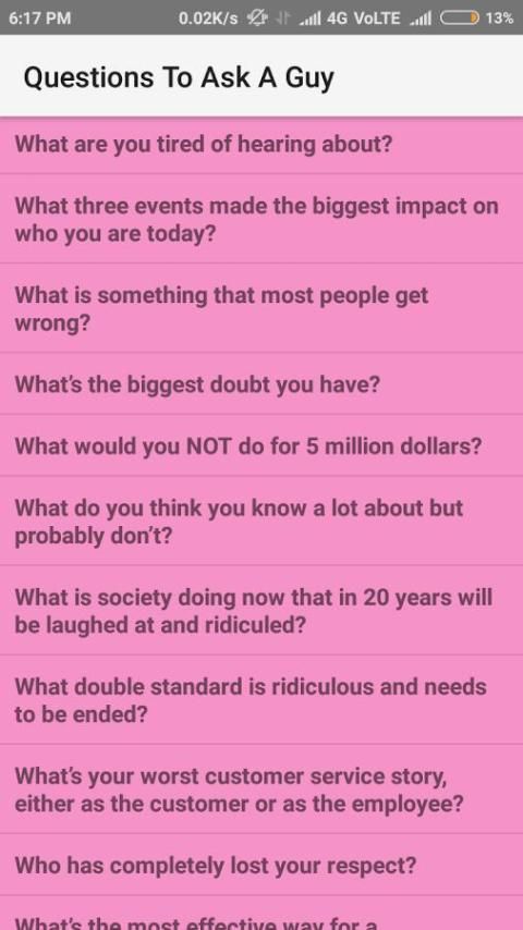 Event besar akan datang! 20,000+ Pengguna mendownload Questions To Ask A Guy versi terbaru di 9Apps secara gratis! Ini adalah salah satu aplikasi favorit saya. Aplikasi HOT ini di rilis tanggal 2017-09-12. Ayo sini dan download sekarang!