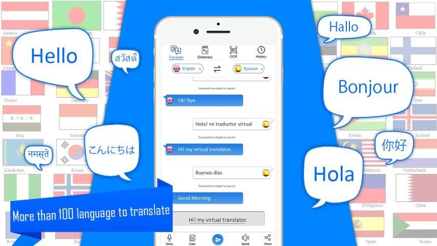 and learn languages of all countries. This translator for all language is real time online translator for any language that gives the quick results with translating words. Translator voice app can also translate text paragraph or sentence with paragraph translator. This app have OCR functionality to detect text with detection mode camera that identify the text by recognition the picture. Translate language app Recognize text with camera to translate live text and quick display the translation results. This translator voice to voice translate spoken words and gives easy translation results. This translating app is best for tourist guide with multiple language translation. Top free translator language app gives fastest translation all language just speak words with translator real time results. It just work like a dictionary to help the students or traveler to learn the language easily translate or download in your phone and share with everyone.