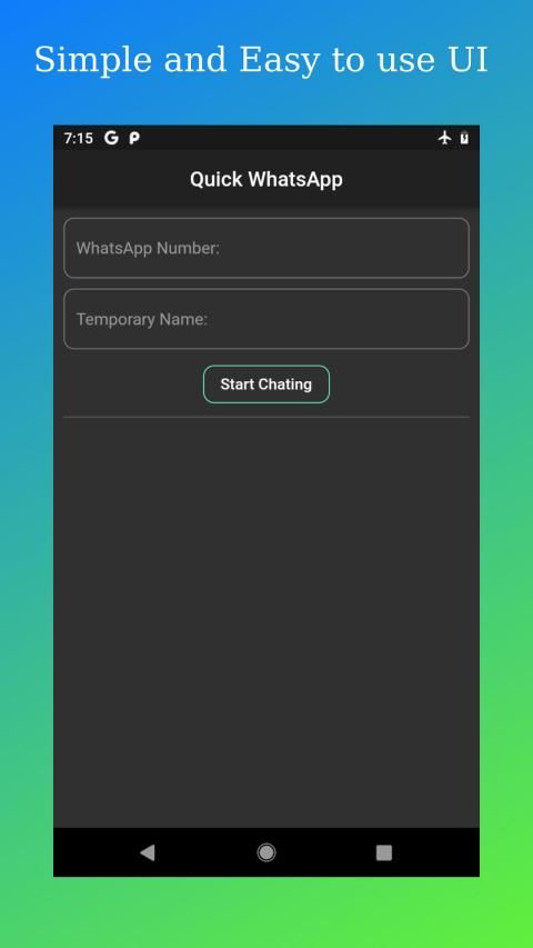 Aplikasi ini memungkinkan Anda untuk membuka obrolan Whatsapp tanpa menyimpan kredensial.