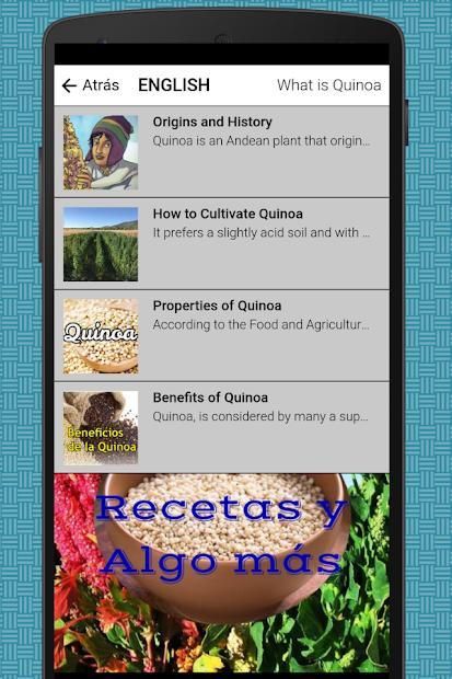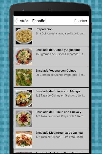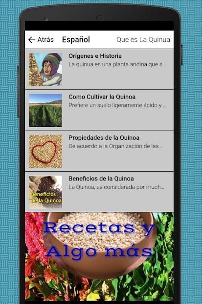 Quinoa Recetas y Algo Mas, es una apps gratuita que contiene distintas formas de preparar este maravilloso cereal.
