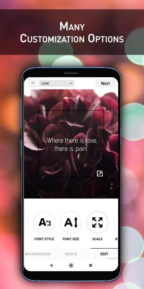 The Quotes Creator Pro helps you to Share your own thoughts through pictures. Create beautiful inspirational text pictures and famous quotes images for Instagram, Facebook, Twitter or any other social media.