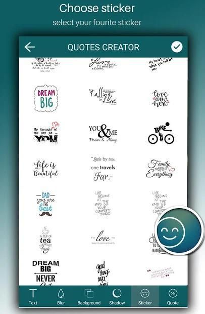 Quotepic adalah editor teks lengkap yang memiliki banyak opsi edit seperti ukuran teks, gaya font, warna teks, bayangan, format teks, perataan teks, dll.
