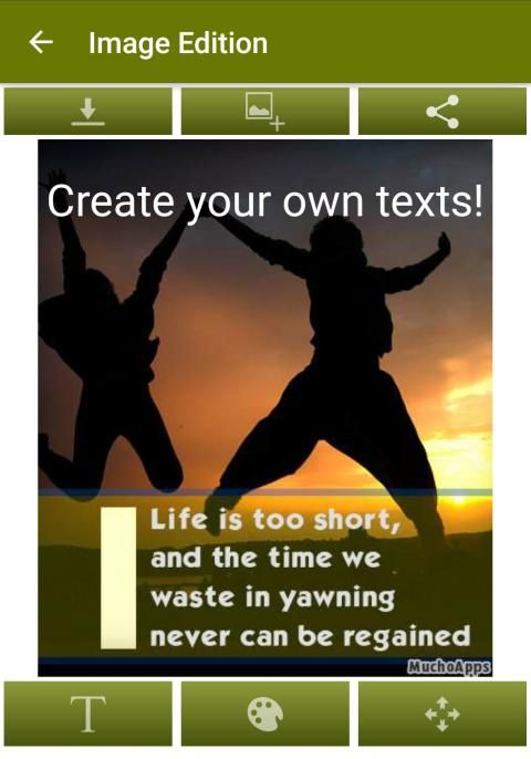 - Kami telah menciptakan editor kaya sehingga Anda dapat menambahkan teks Anda sendiri untuk desain favorit Anda. Pilih Ukuran font, warna dan lokasi untuk menyesuaikan semua gambar sesuai dengan preferensi Anda.