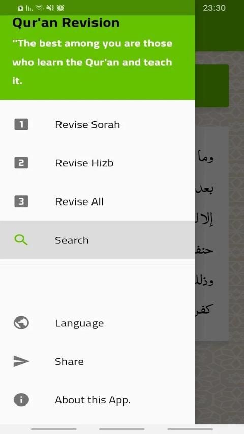 Dalam aplikasi ini, saya mencoba untuk memberikan berbagai bentuk revisi yang mungkin diperlukan Hafiz Al-Quran dalam hal merevisi surat, merevisi partai, dan tinjauan komprehensif dari Kitab Allah.