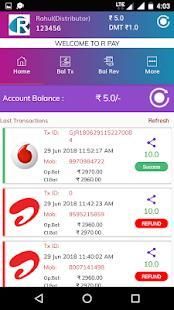 R Pay Recharge App provides all services to end user.Money transfer,utility ,bill payment