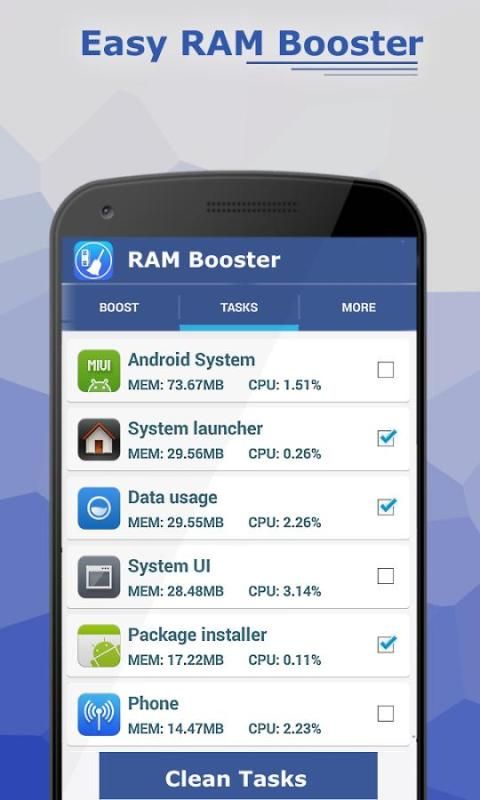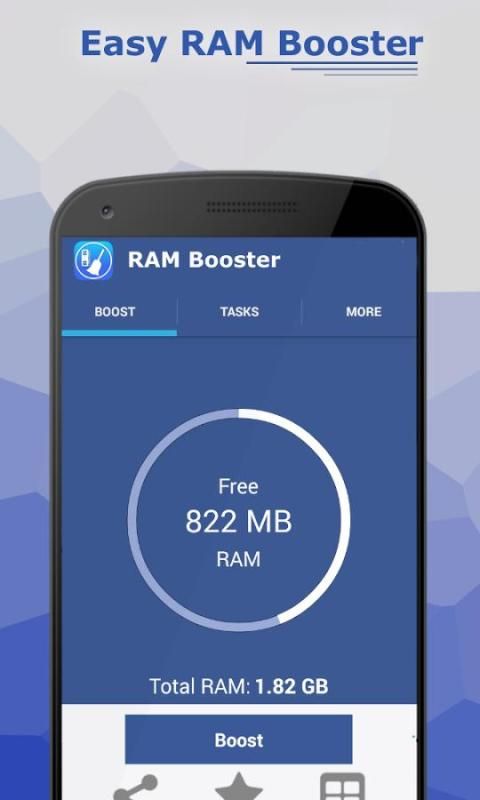 RAM Booster adalah aplikasi utilitas yang mempercepat kinerja android ponsel Anda hanya dengan klik button.It sebuah bertujuan untuk mengambil kompleksitas aplikasi task manager lain dan menyediakan pengguna dengan mudah digunakan dan antarmuka yang mudah digunakan.