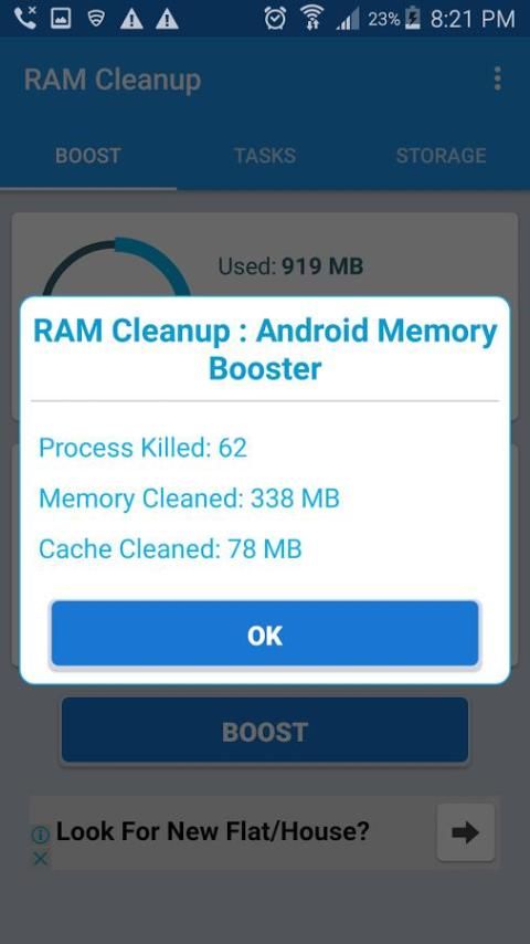 RAM Cleanup adalah aplikasi yang bagus untuk membersihkan tembolok tidak terpakai Anda yang membuat ponsel Anda lambat dan menggantung.