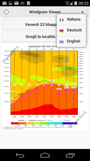 Penampil Windgram untuk ramalan cuaca tersedia di situs FIVL (ASD Italian Federation Flight).Kunci rekaman diperlukan untuk mengaktifkan aplikasi.