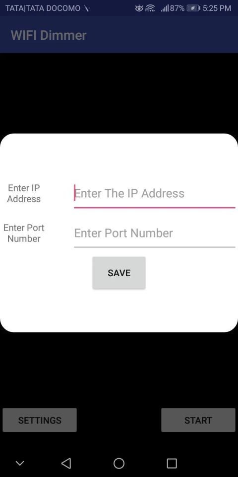 Dimmer is used to regulate the voltage supply of any device such as fan, LED light so that the speed or intensity can be varied. This application uses WiFi as a connectivity medium to regulate the dimmer module. User has to enter the IP Address and port number to configure it then click on start to regulate the device. This version of application supports android 9.0 and version below it and also some minor changes has been introduced in User Interface