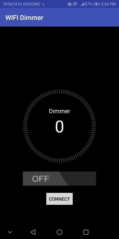 Dimmer digunakan untuk mengatur suplai tegangan perangkat apa pun seperti kipas, lampu LED sehingga kecepatan atau intensitasnya bisa bervariasi. Aplikasi ini menggunakan WiFi sebagai media konektivitas untuk mengatur modul dimmer. Pengguna harus memasukkan Alamat IP dan nomor port untuk mengkonfigurasinya lalu klik mulai untuk mengatur perangkat. Versi aplikasi ini mendukung Android 9.0 dan versi di bawahnya dan juga beberapa perubahan kecil telah diperkenalkan di Antarmuka Pengguna