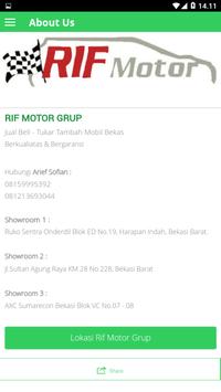 Rif Motor Grup Kami menyediakan bermacam merk & type mobil bekas & baru dengan harga bersaing. Melayani Tukar Tambah, Cash/ Credit & berani beli harga tinggi mobil bekas anda. Jaminan 100% ke ASLI an Dokumen.