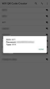 Wifi QR Code Creator and Info lets you easily share your wifi networks as QR codes. All anyone who wants to connect to your wifi just has to scan the generated QR code, and press connect¹.
