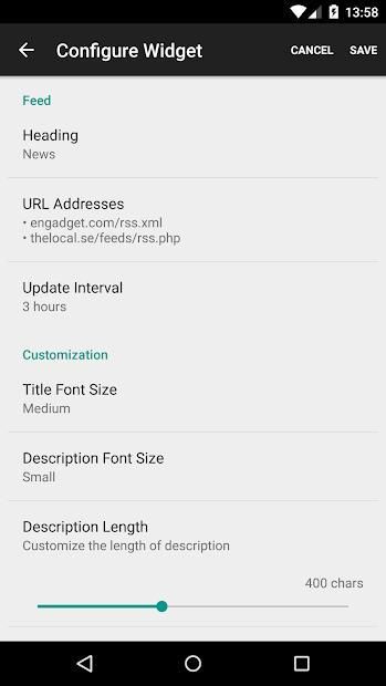 Sangat sederhana, bersih dan mudah digunakan widget untuk menampilkan RSS feed di rumah Anda dan / atau layar kunci. Itu tidak apa itu dimaksudkan untuk melakukan, mengambil sebagian kecil minimal memori ponsel Anda.