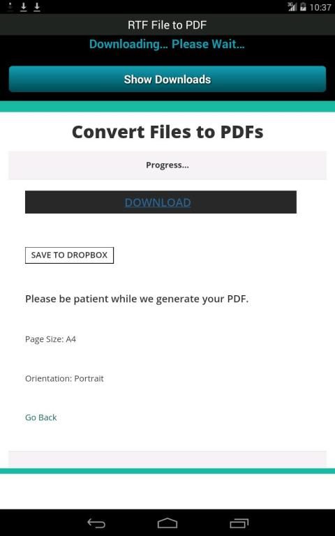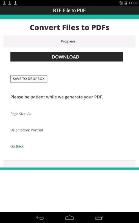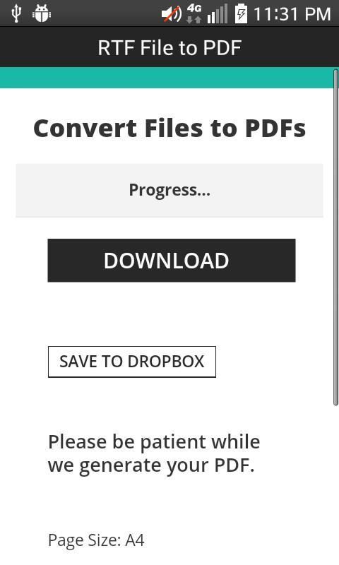 Once the PDF file has been generated, you'll have the option to download the PDF to your phone or tablet, or save it to your Dropbox account.