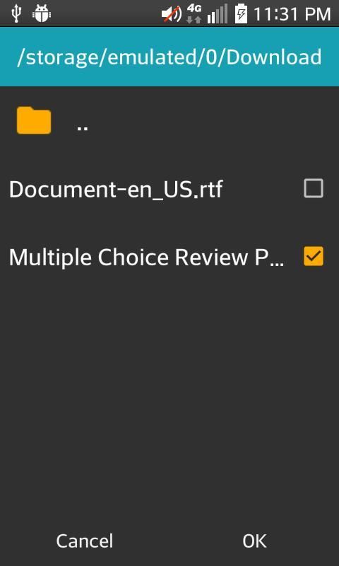 Ketika mengkonversi file Anda Anda dapat memilih apakah akan meng-upload dokumen Anda dari SD card eksternal atau internal yang ditiru kartu SD dengan browsing dan memilih file menggunakan built in file browser, atau dengan meraih file dari Dropbox Anda.