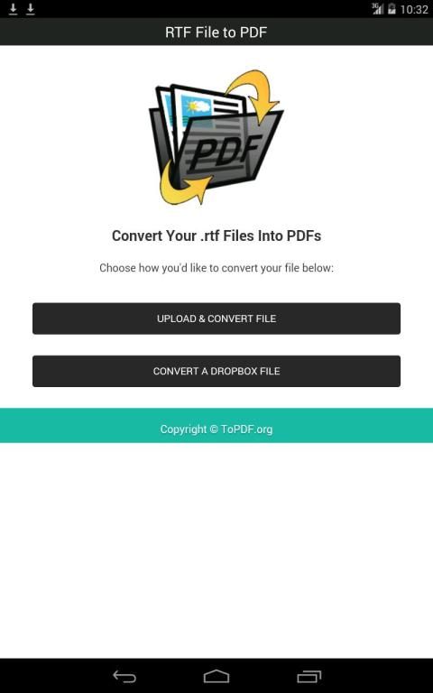 1) Install and open the RTF File to PDF converter app and choose whether you'd like to "Upload & Convert File" or "Convert a Dropbox File".