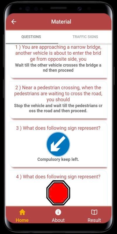 Time Bound Test : Exactly same as RTO test, random questions and road signs related questions will be asked in this exam. Time limit for each question is exactly same as approved by state RTO Department.